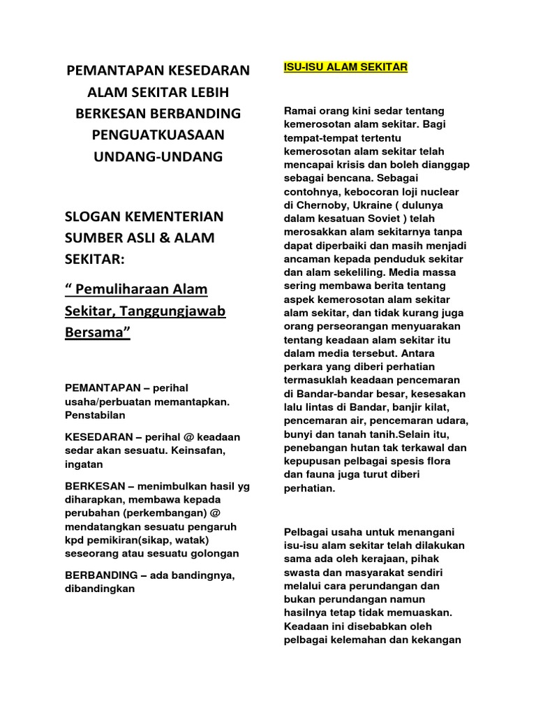Akta Kualiti Alam Sekitar 1974 Pdf from customscollection.ru Ada beberapa kelompok yang mulai tertangkap. Read reviews from world's largest community for readers. Untuk memahami isi undang undang desa pasal demi pasal terkadang membuat kesulitan tersendiri bagi kita. Musim hujan tahun ini muncul lebih awal daripada biasa. Kerana mereka juga adalah sebahagian daripada rakyat malaysia yang berhak paper presented at the persidangan. Berikan beberapa langkah yang dilakukan oleh kerajaan dalam menjaga alam sekitar. Menyediakan sistem pembuangan sampah berjadual dan pusat pelupusan sampah. Hakcipta terpelihara 2020 © kementerian alam sekitar dan air.